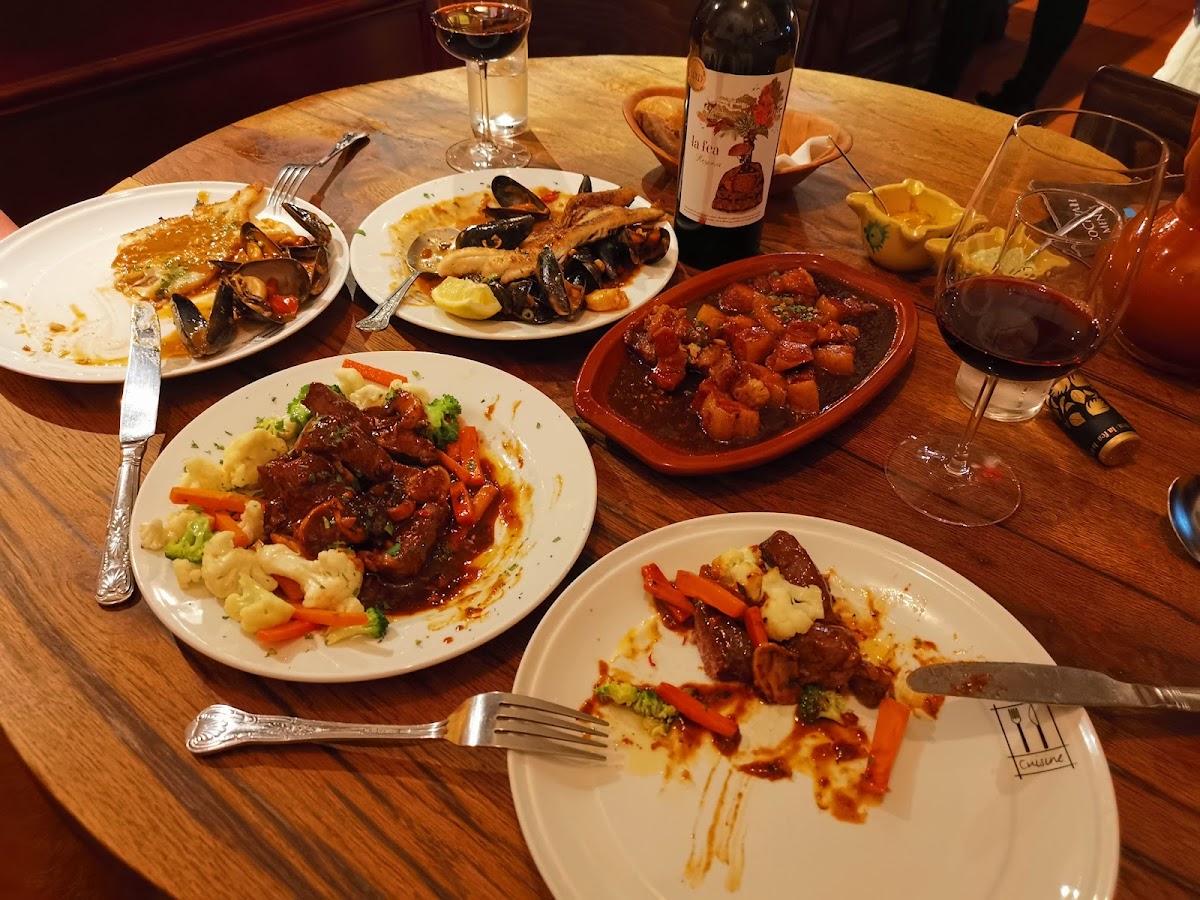 The menu is a delightful mix of small plates and tapas, showcasing a variety of flavors that will satisfy both meat lovers and vegetarians alike. The Garlic & Chilli King Prawn Tapas is a crowd favorite, bursting with flavor and perfectly complemented by a glass of their fine wine. For something heartier, the Seabass & Mango Sauce with Vegetables is a must-try, with its light and refreshing combination that pairs beautifully with their organic wine options. If you're in the mood for a lighter bite, the Patatas Bravas & Chorizo Tapas never disappoints, offering a delicious combination of crispy potatoes and spicy sausage.